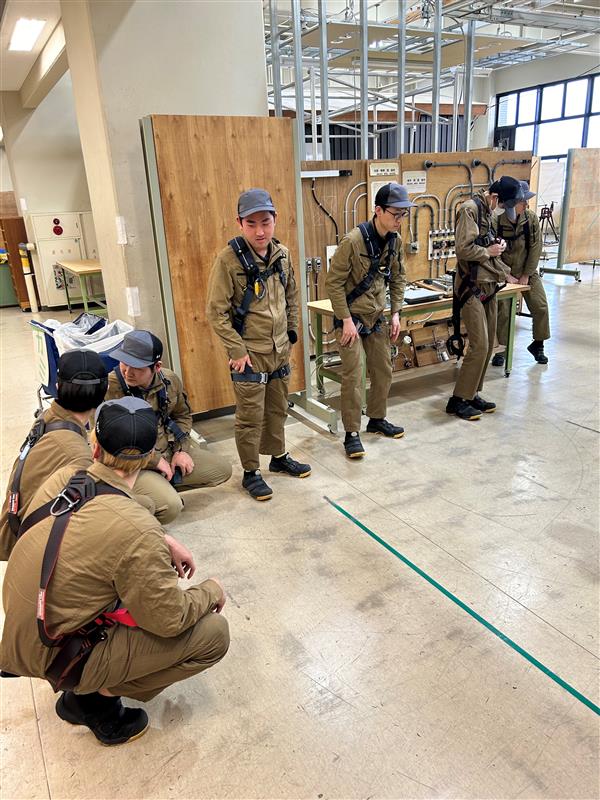 ・フルハーネスの適切な装着方法や誤った装着による事故事例を学びました。