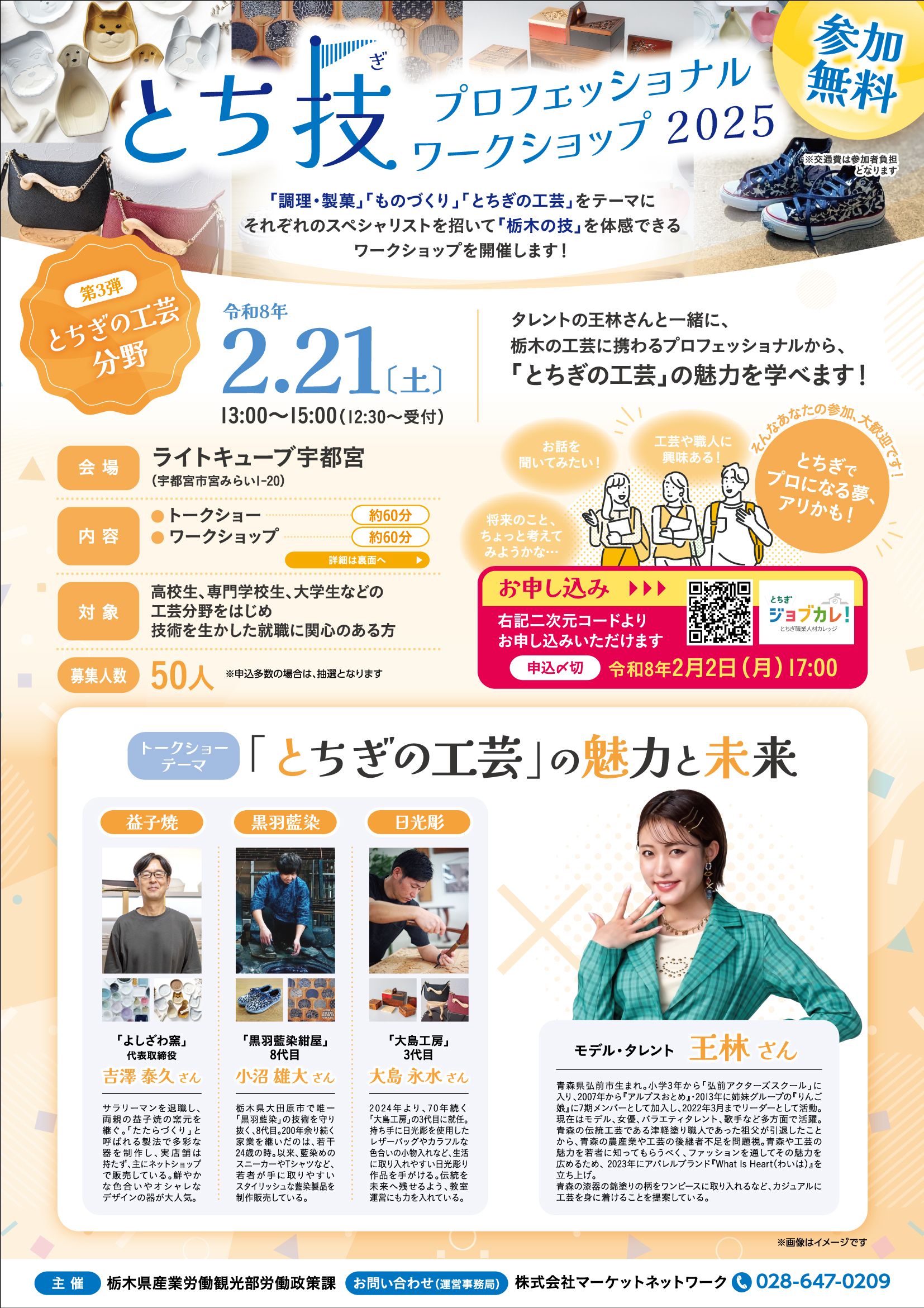 タレントの王林さんと一緒に、栃木の工芸に携わるプロフェッショナルから、「とちぎの工芸」の魅力を学べます!
