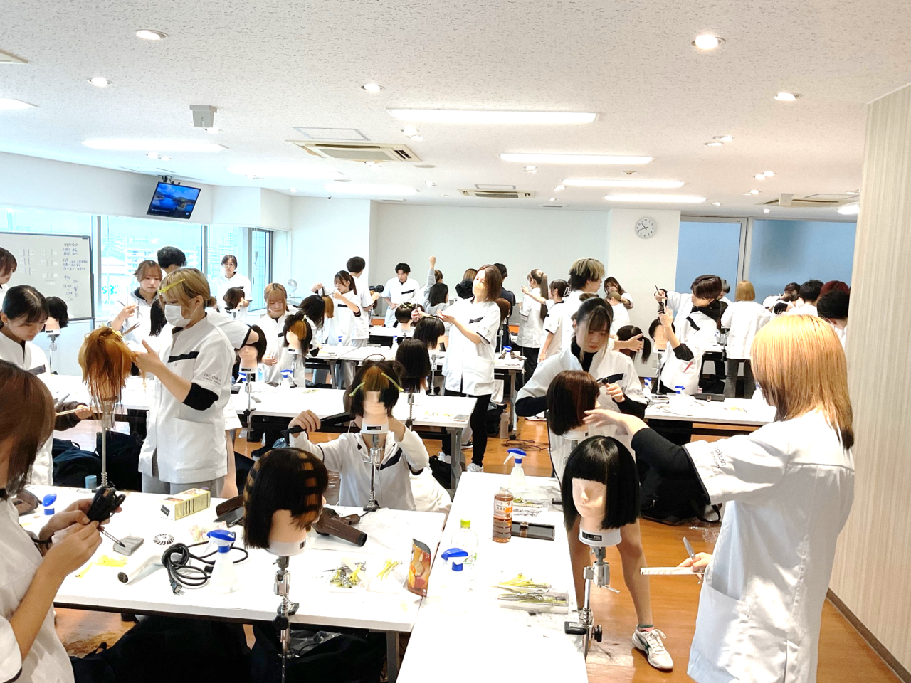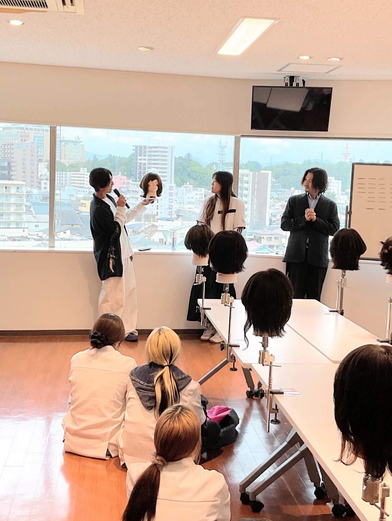 そこで、本物の人毛でできたウィッグを使って、より実践的なカット&スタイリングの特別授業が行われました!