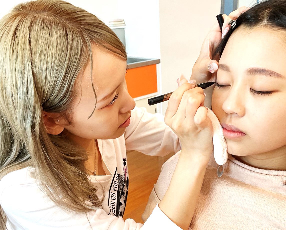 幅広いジャンルで活躍しながら、実際に韓国アイドルのライブ・ファンイベントのメイクも多く担当してきたヘアメイク講師 下山 葵 氏による特別授業が行われました!